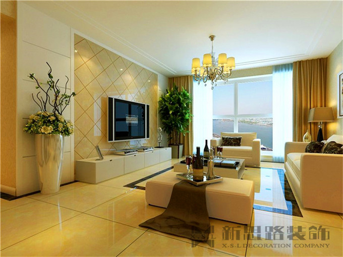 客廳:電視背景墻運(yùn)用大理石上墻,外擺放植物,電視柜等裝飾,使電視背景墻既不復(fù)雜而簡潔大方。
