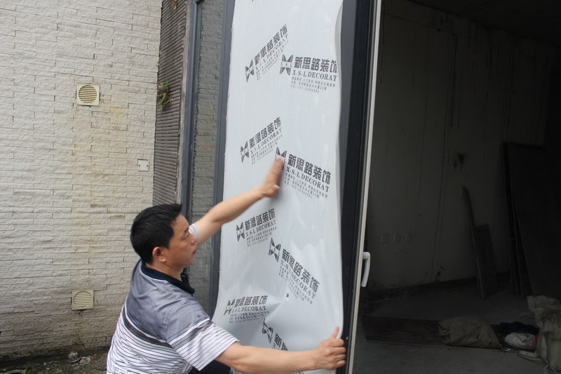 張貼門保護(hù),確保在裝修過程中大門不被損壞。