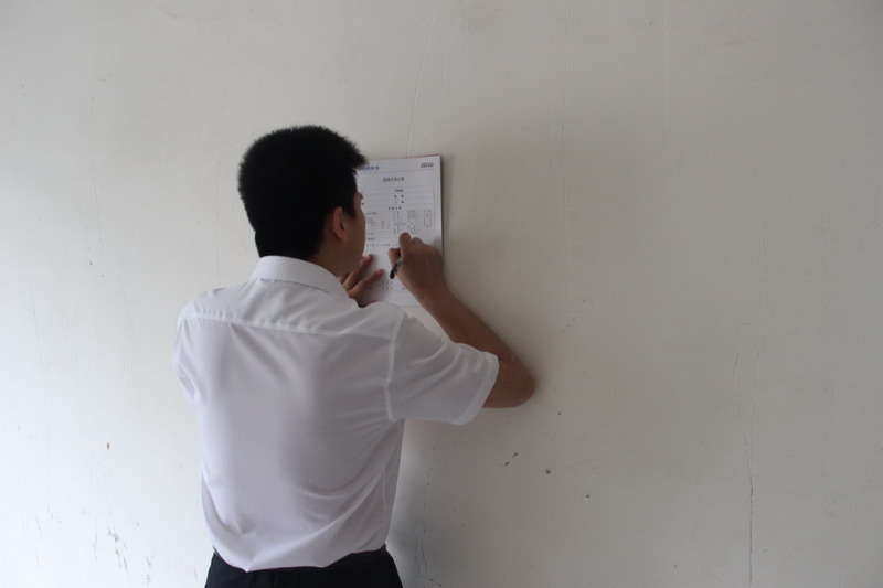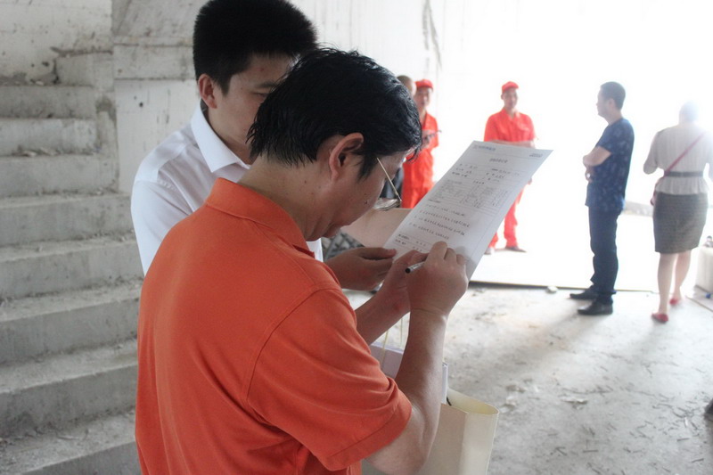 質(zhì)檢正在認(rèn)真填寫客戶服務(wù)手冊(cè),以確認(rèn)本次進(jìn)場(chǎng)交底符合公司工程施工管理的相關(guān)規(guī)定。