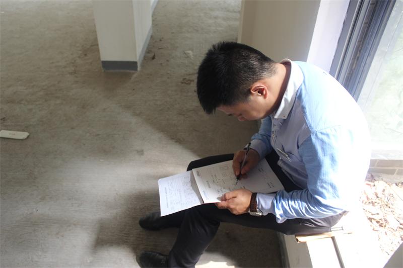 工程質(zhì)檢正在認真填寫客戶服務(wù)手冊,以確認本次進場交底符合公司工程施工管理的相關(guān)規(guī)定。