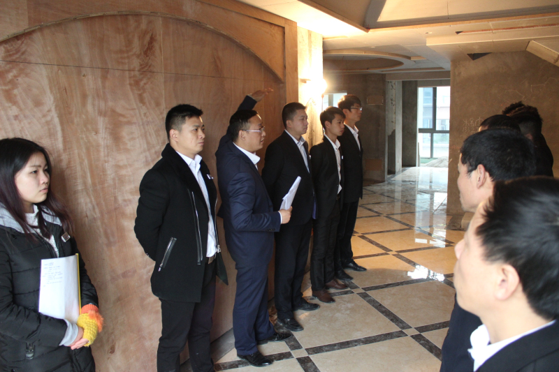 培訓(xùn)當(dāng)天氣溫較低,但項(xiàng)目經(jīng)理們依舊精神飽滿,整齊穿戴西服,井然有序的排成一列,展現(xiàn)出新思路裝飾施工管理隊(duì)伍團(tuán)結(jié)向上的良好風(fēng)貌。此次培訓(xùn)由工程部文經(jīng)理親自主講,主要內(nèi)容是以現(xiàn)場(chǎng)施工管理為主。他結(jié)合自己多年現(xiàn)場(chǎng)施工及管理經(jīng)驗(yàn),通過實(shí)際案例,從施工的各個(gè)環(huán)節(jié),包括防水工藝的規(guī)范標(biāo)準(zhǔn)、地磚鋪貼的排版要求、地面斜水的高低差值、吊頂施工細(xì)節(jié)等方面,深入淺出的為大家講解。在講解過程中,參訓(xùn)人員頻頻舉手,或提出疑問,或分享心得,現(xiàn)在互動(dòng)頻繁,共同營造了一個(gè)輕松、良好的培訓(xùn)氛圍。培訓(xùn)結(jié)束后,所有參訓(xùn)人員還參觀了現(xiàn)場(chǎng)工地,大家結(jié)合現(xiàn)場(chǎng)案例,熱烈討論,分享彼此在施工過程中的經(jīng)驗(yàn)和心得,從而推動(dòng)了培訓(xùn)成果快速落地。
