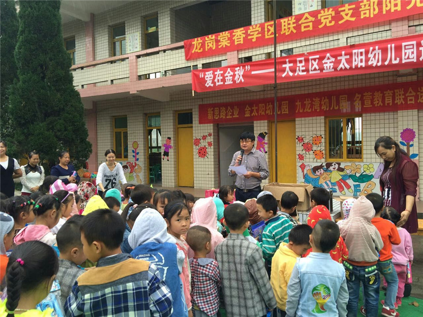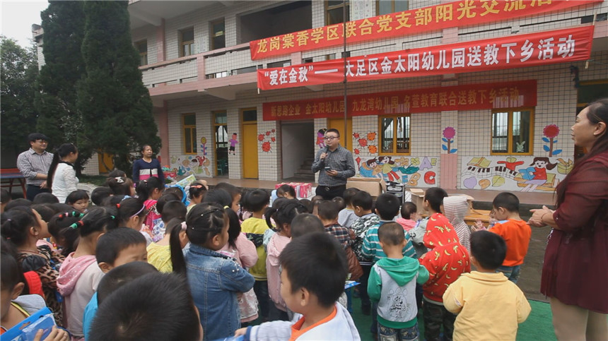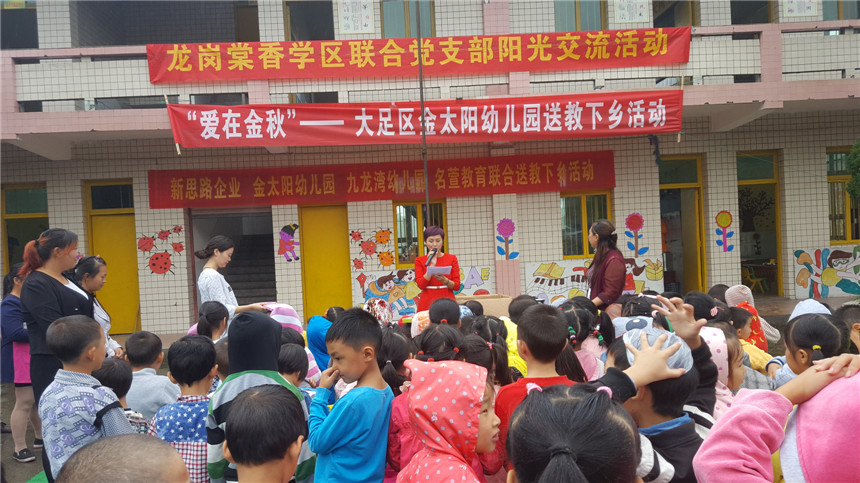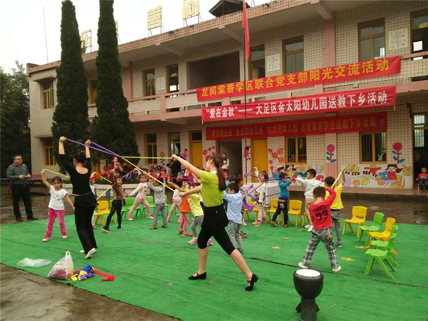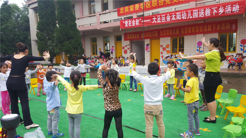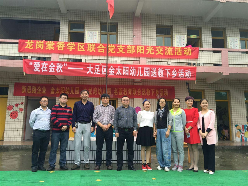 新思路企業(yè)李總、龍崗棠香學(xué)區(qū)盧主任、金太陽(yáng)幼兒園譚園長(zhǎng)、骨干教師及部分民辦幼兒園園長(zhǎng)等人一同前往大足區(qū)石馬鎮(zhèn)白光村幼兒園。