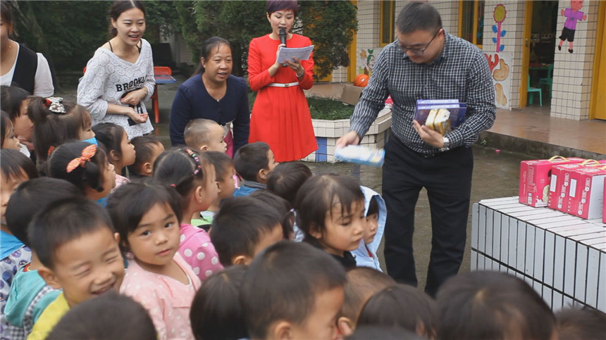 李總給小朋友們發(fā)放禮物