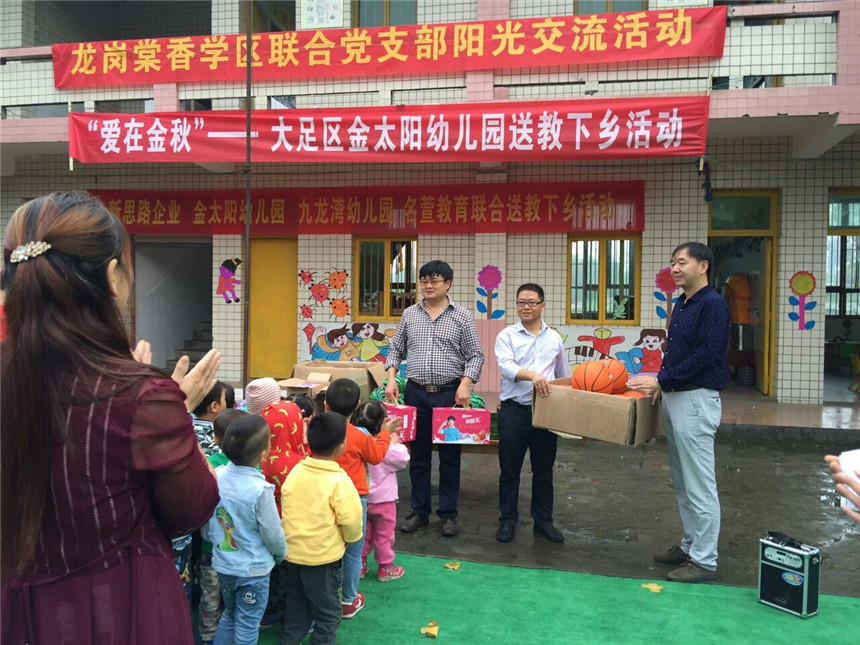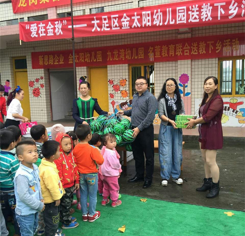 為了推進(jìn)城鄉(xiāng)幼教事業(yè)的均衡發(fā)展,充分發(fā)揮優(yōu)質(zhì)民辦幼兒園的引領(lǐng)、示范、輻射作用,本著“幫扶共進(jìn)、共同提高”的指導(dǎo)原則,共享優(yōu)質(zhì)教育資源,引領(lǐng)教師專業(yè)成長(zhǎng),全面提高學(xué)前教育保教質(zhì)量。新思路企業(yè)決定與金太陽(yáng)幼兒園共同開(kāi)展“送教下鄉(xiāng)捐贈(zèng)”活動(dòng)。