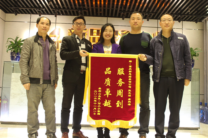 11月12日上午,美利山業(yè)主何老師及家人親臨南坪總部新思路裝飾為設計師敖元壩,工長唐科海送上一面印有:“服務周到,品質卓越”的錦旗。這是對新思路裝飾品質的認可,這也正是我們所秉承:客戶滿意是我們唯一的工作標準”的裝修理念。