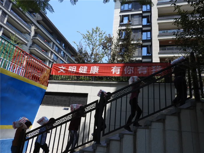 林肯公園小區(qū),張總正在帶領(lǐng)慰問小組搬運礦泉水