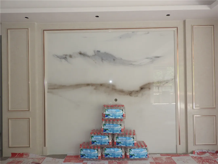 保利堂悅工地。電視墻初步制作完成,非常漂亮