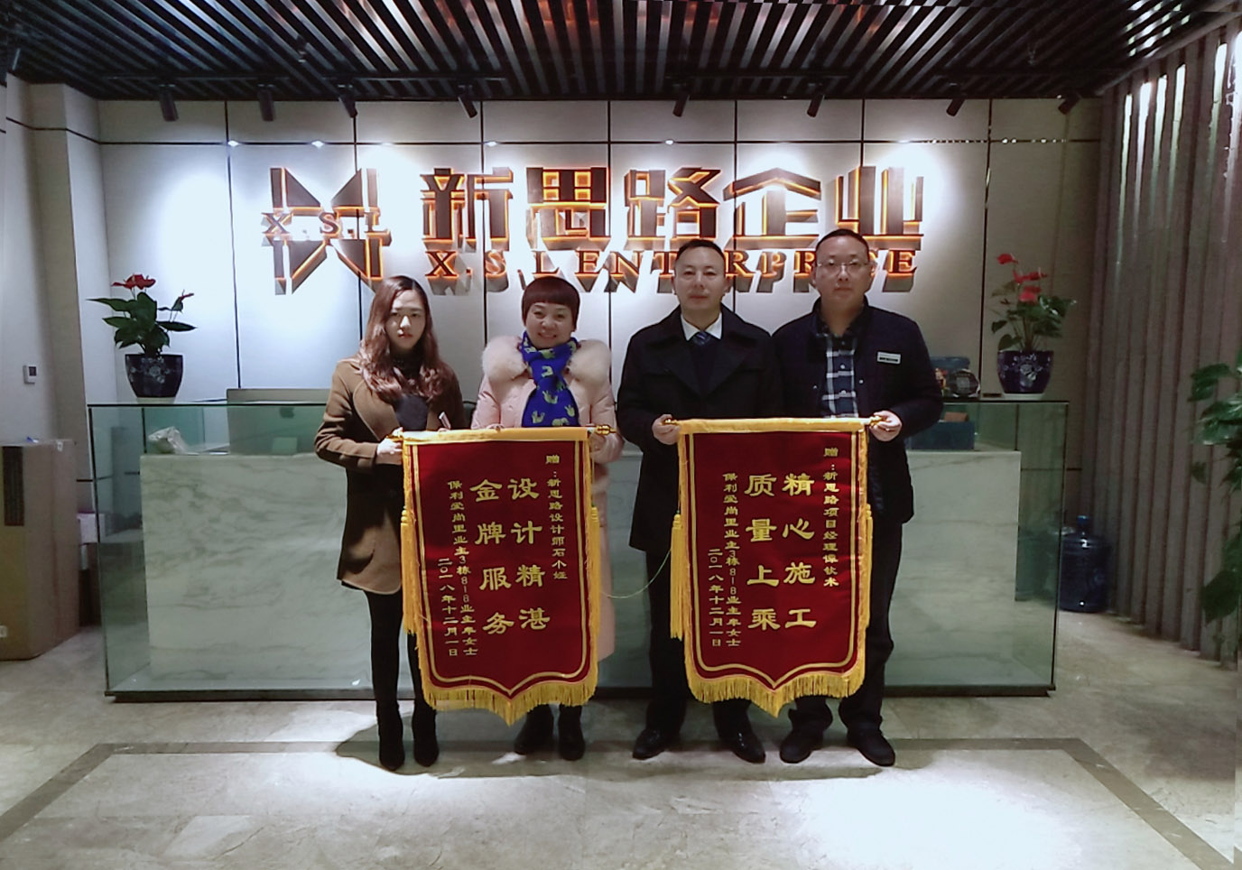 2018年12月7日下午,來自保利愛尚里的業(yè)主牟老師專程來到南坪總部將一面印有“設(shè)計(jì)精湛,金牌服務(wù)”的錦旗交給我們?cè)O(shè)計(jì)師石小婭手中,又將一面印有“精心施工,質(zhì)量上乘”的錦旗交到我們項(xiàng)目經(jīng)理譚欽術(shù)手中,以感謝新思路裝飾高品質(zhì)工藝和優(yōu)質(zhì)貼心的服務(wù)。
