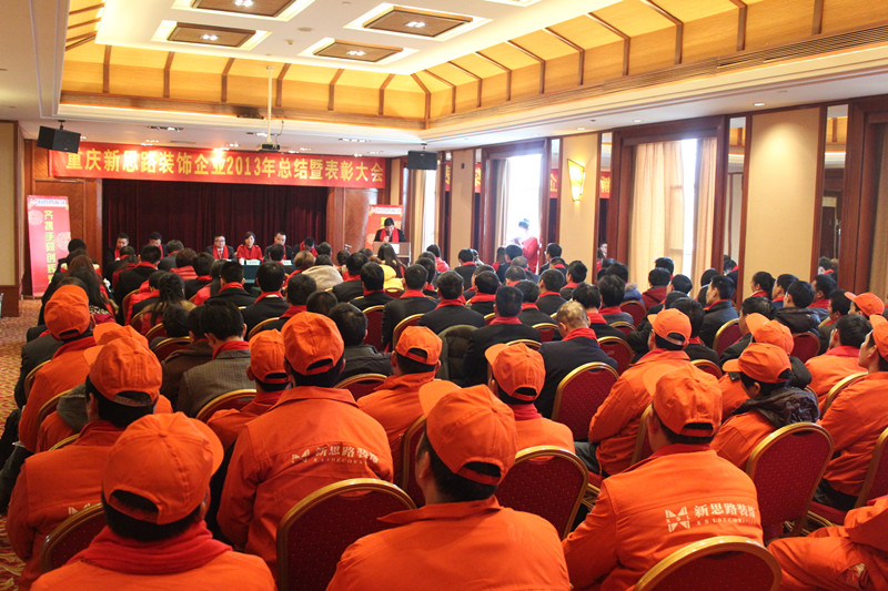 2014年1月20日下午,新思路裝飾“2013年度工作總結(jié)暨表彰大會”在麗華酒店9樓會議廳勝利召開。公司總部各部門、分公司各部門、施工一線員工代表近200人參加了會議。