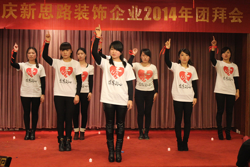 美好的時(shí)光總是過(guò)得很快,新思路裝飾“2014新春團(tuán)拜文藝晚會(huì)”在一片歡聲笑語(yǔ)中畫(huà)上了圓滿的句號(hào),也迎接了新一年的到來(lái)。回顧過(guò)去,我們心存感激;展望未來(lái),我們信心百倍。2014年,讓我們用踏實(shí)的步伐、激昂的斗志,迎接嚴(yán)峻的挑戰(zhàn),創(chuàng)造新的奇跡和輝煌!