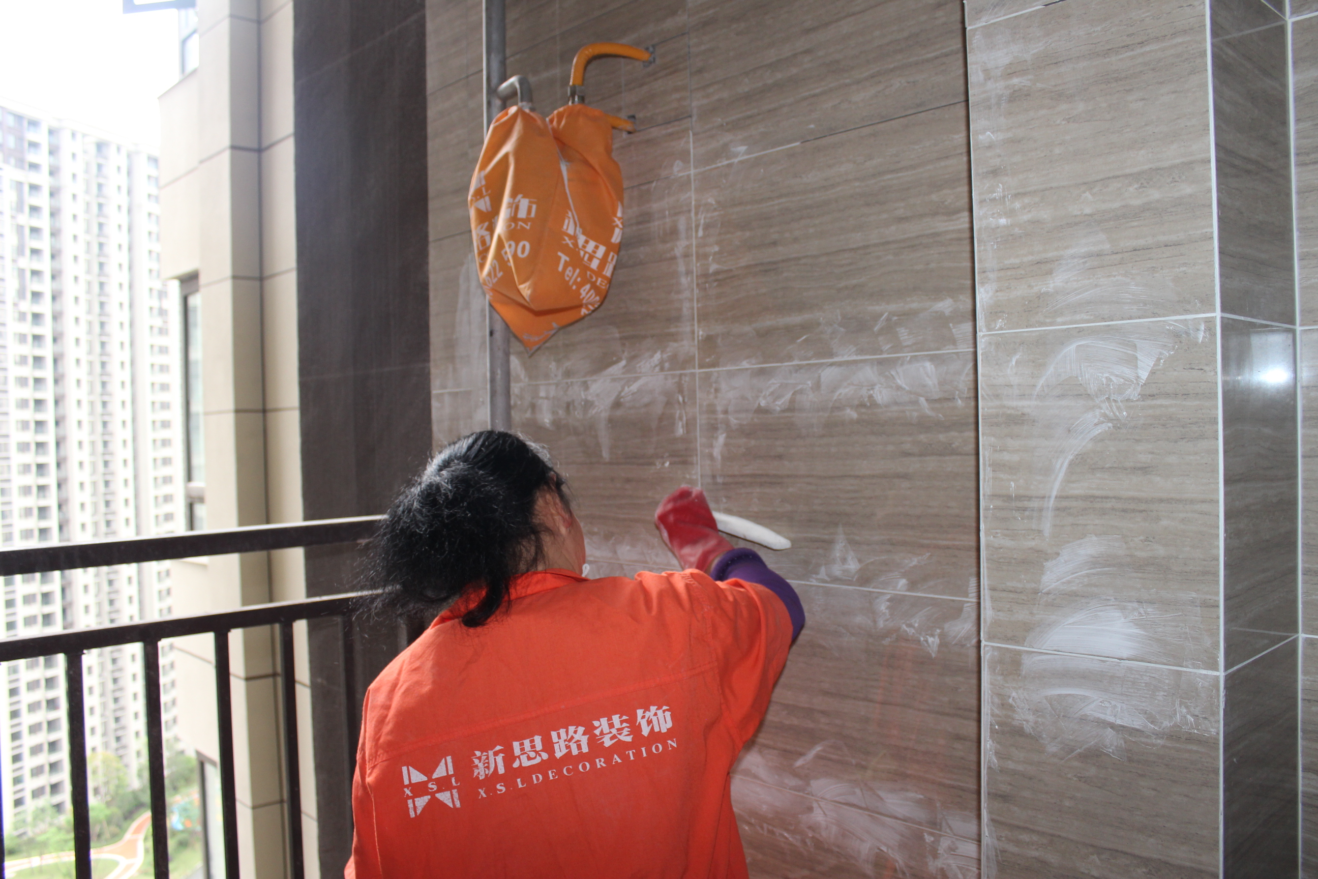 工人師傅正在瓷磚勾縫