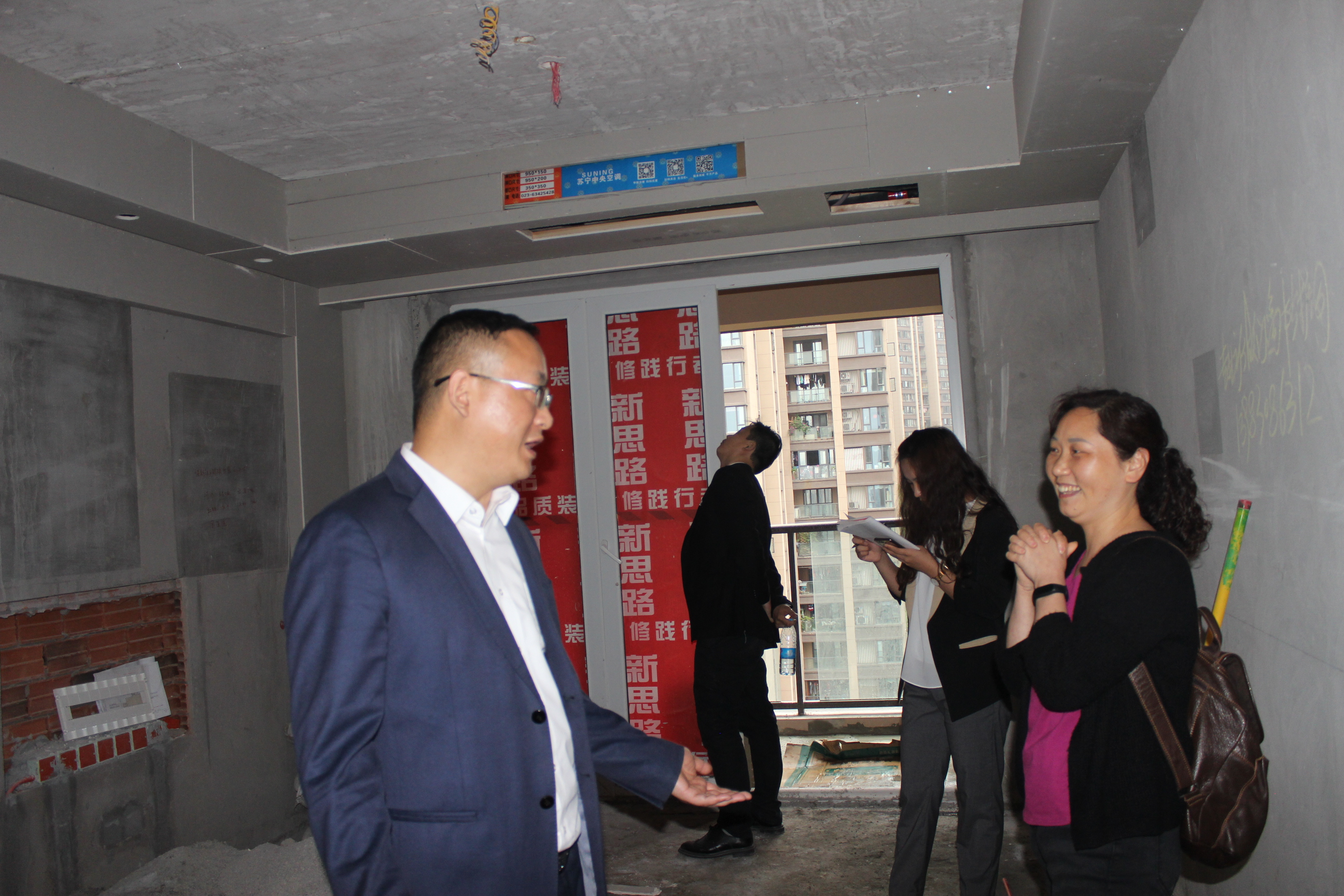 在此次巡查過(guò)程中,遇見(jiàn)了好幾位業(yè)主,各業(yè)主對(duì)公司的施工工藝及工地形象都給予了肯定。保利愛(ài)尚里的業(yè)主張先生,表?yè)P(yáng)了項(xiàng)目經(jīng)理?xiàng)铊a十分積極的工作態(tài)度,并對(duì)他的施工工藝提出了寶貴的建議。在保利江上明珠遇到了業(yè)主唐女士,更是對(duì)新思路裝飾的工人師傅贊不絕口,一直夸我們的工人師傅工藝好、不浪費(fèi)材料、負(fù)責(zé)任??蛻舻目隙?,就是對(duì)我們最大的支持。對(duì)于客戶的建議,我們虛心接受,在今后的施工過(guò)程中,我們將更加嚴(yán)謹(jǐn)仔細(xì)。將更好的工藝標(biāo)準(zhǔn),工地形象展現(xiàn)給每一位業(yè)主!