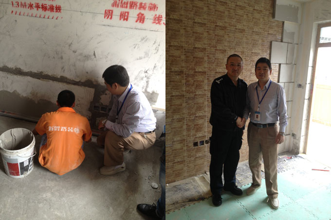 接著我們又細(xì)致的查看了工地現(xiàn)場(chǎng),在經(jīng)過(guò)公司工藝工程升級(jí)培訓(xùn)之后,工地質(zhì)量、施工隊(duì)伍的素質(zhì)也得到了明顯提高。工地現(xiàn)場(chǎng)規(guī)范整潔,施工垃圾也分類歸放,工人施工技術(shù)更加熟練專業(yè),在很多工藝細(xì)節(jié)上,均采用新技術(shù)解決了工程施工中遇到的難題。