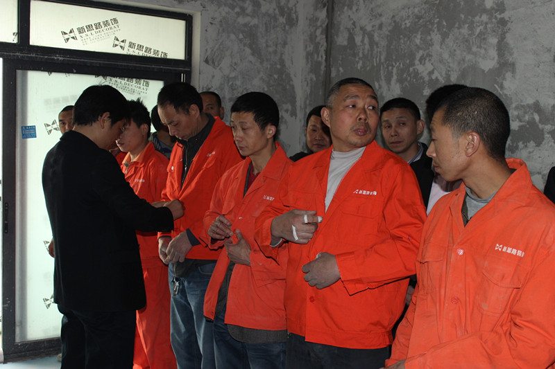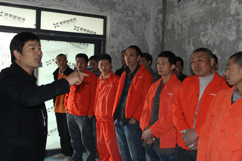 此次培訓由具有二十多年施工經(jīng)驗的張總親自主持。首先,張總以提問的形式宣講了公司的基本信息和企業(yè)文化,同工人們進行了熱烈互動,對于回答正確的工人,當場給予現(xiàn)金獎勵。張總強調,作為新思路裝飾的一員,牢記公司的一些基本信息不僅能加強對公司的了解,同時也是展現(xiàn)新思路員工職業(yè)素養(yǎng)和形象的新窗口。隨后張總又從泥水施工新工藝技術、工序流程、規(guī)范標準、注意事項等方面對工人們進行了專業(yè)培訓。在培訓過程中,張總以現(xiàn)場在施工工地為實例,通過一些鮮活的事例,比如一根線,兩顆釘子,怎樣找水平;平整度、垂直度如何檢測;磚與磚接縫高低差標準;陰陽角角度差等,進行現(xiàn)場示范和講解。工人們也積極發(fā)言,提出一些獨到的觀點和見解,張總也熱情耐心地同他們交流討論,現(xiàn)場氣氛輕松而熱烈。