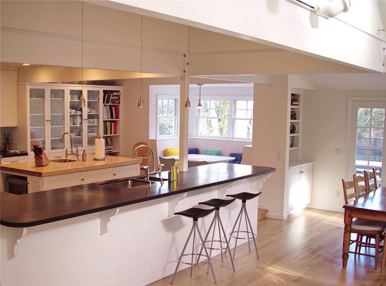 在室內(nèi)設(shè)置吧臺,必須將吧臺看作是完整空間的一部分,而不單只是一件家具,好的設(shè)計能將吧臺融入空間。吧臺的位置并沒有特定的規(guī)則可循,設(shè)計師通常會建議利用一些畸零空間,如果將吧臺融入當做是空間的主體時,便要好好考慮動線走向。良好的設(shè)計具有引導性,無形中使居住往來更加舒適。